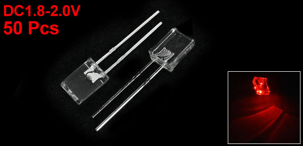 50 PCS Rectangular Head 2 Pin Red LED Light Emitting Diodes DC 1.8-2.0V