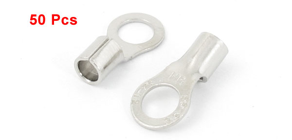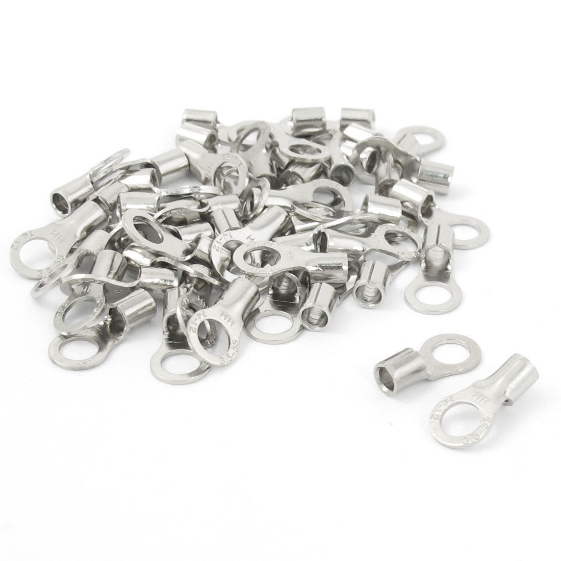 50 Pcs RNB3.5-5 AWG14-12 Cable Non Insulated Ring Terminals Silver Tone