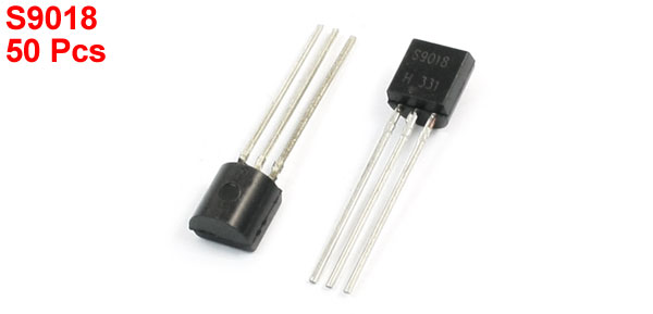 50 Pcs S9018 NPN TO-92 3 Pins Through Hole Transistor 25V 60mA