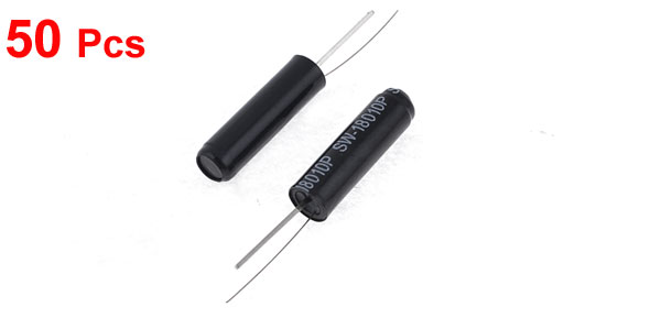 Details50 Pcs Single Bead High Sensitivity Black Vibration Sensor Switch  Product Name Vibration Sensor Switch Model Number SW-18010P Max.Voltage <12VDC Rated Thermal Current 0.2mA Insulation Resistance >10M ohm Max.Temperature Resisting 100C Body Dimension 4.5 x 15mm/0.18" x 0.59"(D*L) Pin Length 10mm/ 0.39" Pin Diameter (Max) 0.5mm/0.02" Net Weight 11g Package Content 50(± 2%)x Vibration Sensor Switch