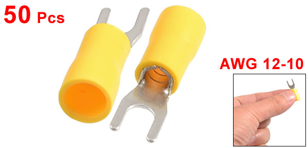 50 Pcs SV5.5-4S AWG 12-10 Yellow Pre Insulated Fork Terminals Connector
