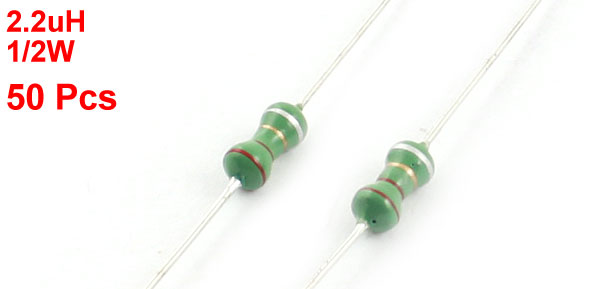 Product Name Color Ring Inductor Inductance Tolerance 10%(K) Inductance 2.2uH Power 1/2W Material Epoxy Resin, Metal, Inductor Body Size 4mm x 10mm / 0.16" x 0.4"(Max.D*L) Lead Diameter 0.5mm Total Length 6cm / 2.4" Net Weight 14g Package Content 50(±2%) x Color Ring Inductor - Reviews