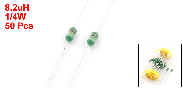 Product Name Color Ring Inductor Inductance Tolerance +/-10%(K) Inductance 8.2uH Power 1/4W Material Epoxy Resin, Metal, Inductor Body Size 3mm x 7mm / 0.12" x 0.27"(Max.D*L) Lead Diameter 0.4mm / 0.016" Total Length 6cm / 2.4" Net Weight 9g Package Content 50(+/-2%) x Color Ring Inductor - Reviews