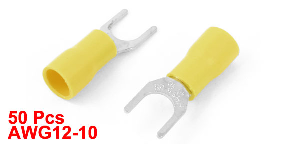 50 Pcs Yellow 6.5mm Bolt Furcate Pre Insulated Fork Terminal AWG12-10