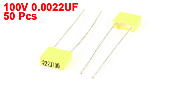 50 Pieces 100V 2.2NF Metal Radial Lead Box Type Film Correction Capacitor Yellow