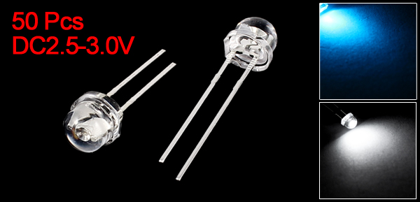 50 Pieces Clear Straw Hat 5mm White Blue LED Light Emitting Diodes DC 2.5-3.0V