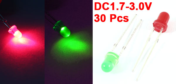 Product Name Light Emitting Diode Material Metal, Plastic Emitting Light Color Red,Green Voltage DC2.5-3.0V Head Size(Approx) 5 x 3mm/ 0.2" x 0.12"(L*D) Pin Size (Approx.) 0.47 x 18mm / 0.018" x 0.7" (D * Max.L)