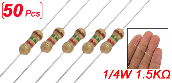 50 x 1/4W 250V 1.5K ohm 1K5 Axial Carbon Film Resistors