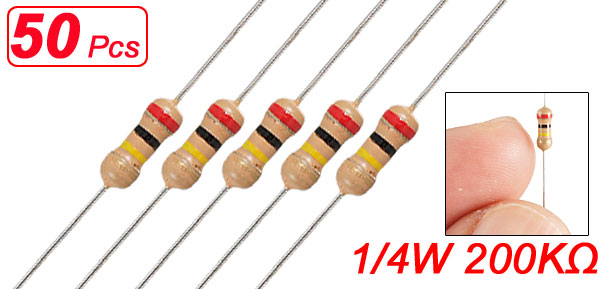50 x 1/4W 250V 200K ohm Through Hole Carbon Film Resistors