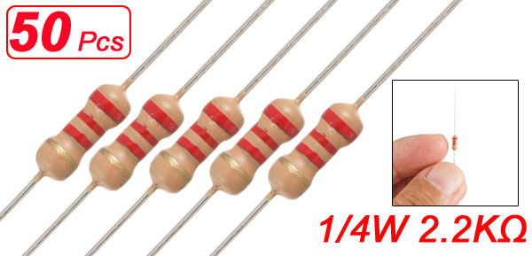 50 x 1/4W 250V 2.2K ohm 2K2 Axial Lead Carbon Film Resistors