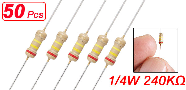 50 x 1/4W 250V 240K ohm Through Hole Carbon Film Resistors