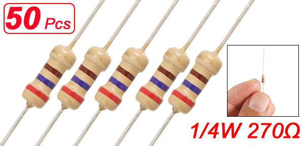 50 x 1/4W 250V 270 ohm Through Hole Carbon Film Resistors