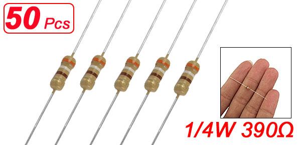 50 x 1/4W 250V 390 Ohm Axial Carbon Film Resistors