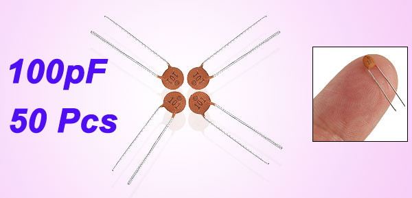 Product Name Ceramic Disc Capacitor Features Low Voltage Withstand Voltage DC 50V Capacitance 100pF Capacitance Tolerance ±10% Lead Pitch Spacing 2mm / 0.07" Body Dimension(Each) 3 x 1.5mm / 0.1" x 0.05"(D*T) Weight 7g Color As Picture Show Package Content 50 (± 2%) x Ceramic Disc Capacitors - Reviews
