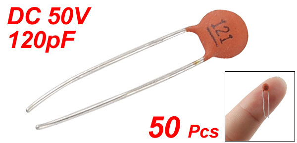 Product Name Ceramic Disc Capacitor Features Low Voltage Withstand Voltage DC 50V Capacitance 120pF Capacitance Tolerance ± 10% Lead Pitch Spacing 2.5mm / 0.1'' Body Dimension(Each) 3 x 1.5mm / 0.1" x 0.05"(D*T) Weight 3g Color As Picture Show Package Content 50 (± 2%) x Ceramic Disc Capacitors - Reviews