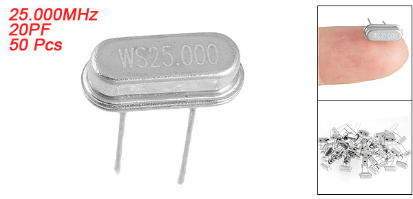 30 ohm Mount Height(Each One) 3mm Mount Size(Each One) 10.5 x 4.2mm(L * W. Max) Pin Length 13mm Material Metal & Electronic Parts Weight 29g Package Content 50(± 2%) x Crystal Oscillator - Reviews