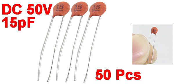 Product Name Ceramic Disc Capacitor Features Low Voltage Withstand Voltage DC 50V Capacitance 15pF Capacitance Tolerance ± 10% Lead Pitch Spacing 2.5mm / 0.1'' Body Dimension(Each) 3 x 1.5mm / 0.1" x 0.05"(D*T) Weight 3g Color As Picture Show Package Content 50 (± 2%) x Ceramic Disc Capacitors - Reviews
