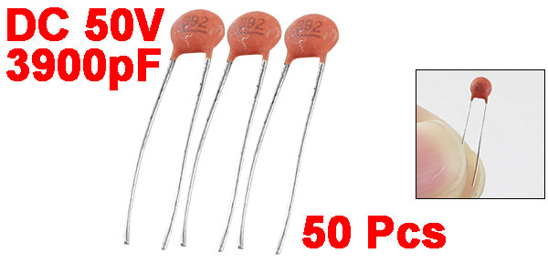 Product Name Ceramic Disc Capacitor Features Low Voltage Withstand Voltage DC 50V Capacitance 3900pF Capacitance Tolerance ± 10% Lead Pitch Spacing 2.5mm / 0.1'' Body Dimension(Each) 3 x 1.5mm / 0.1" x 0.05"(D*T) Weight 3g Color As Picture Show Package Content 50 (± 2%) x Ceramic Disc Capacitors - Reviews