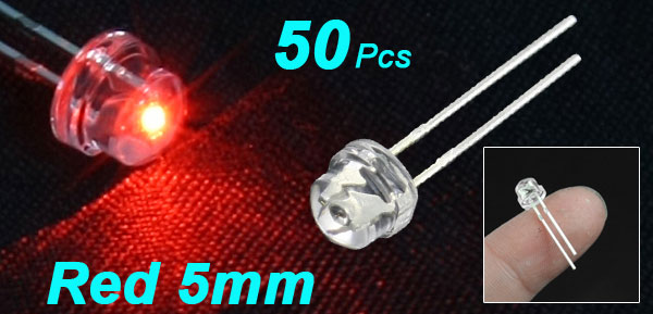 50 x 5mm Dia Straw Hat Red LED Light Lamp Emitting Diodes