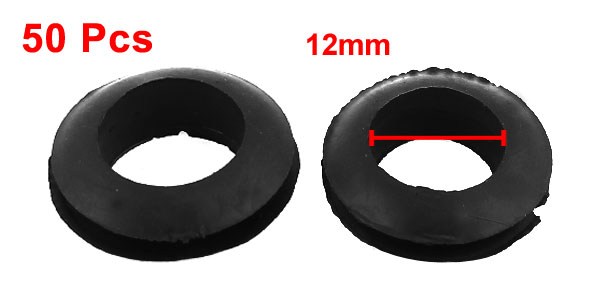 50 x Black Rubber 12mm Open Hole Ring Dual Side Cable Wiring Grommet