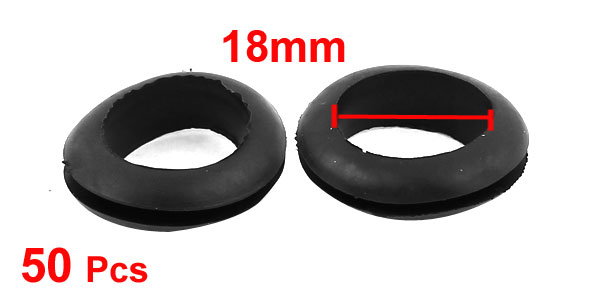 50 x Black Rubber 18mm Open Hole Ring Dual Side Cable Wiring Grommet