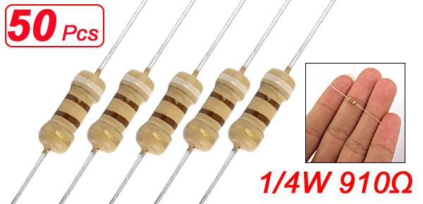 50 x Resistors 910 ohm OHMS 1/4W 250V 5% Carbon Film