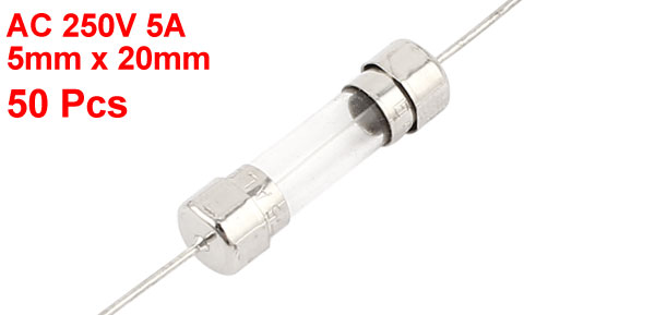 Product Name Fuse Tube Type Slow Blow Rated Power AC 250V 5A Fuse Size 5mm x 20mm Total Length 115mm/ 4.5" Main Color Silver Tone, Clear Main Material Metal, Glass Weight 72g Package 50(+/-2%) x Fuse Tube - Reviews