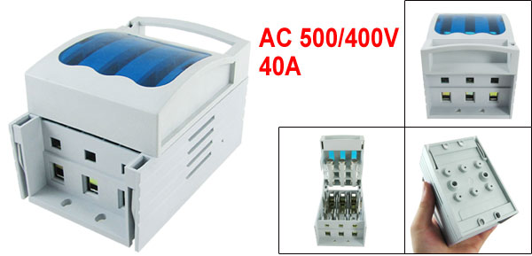 Product Name Fuse Isolating Switch Model No. HR17B-40/30 Fit Fuse Type 14 x 51mm / 0.55" x 2"(D*H)((Fuse not included here) Rated Voltage 500/400VAC Rated Current 40A Rated Limiting Short Current 50kA Rated Heating Current 40A Poles Quantity 3 Mounted Hole Spacing 103 x 22mm / 4" x 0.86"(L*W) Overall Size 115 x 76 x 73mm / 4.5" x 3" x 2.9"(L*W*H) External Material Plastic Color See the Picture Net Weight 304g Package Content 1 x Fuse Isolating Switch - Reviews