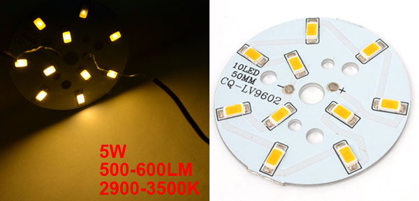 500-600LM 5W Warm White 10x 5730 SMD LED w 50mm Dia. Aluminum PCB Circuit Board