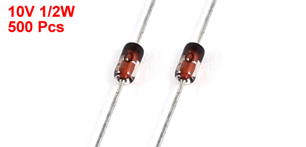 Product Name Zener Diodes Type DIP Tolerance ± 5% Rating Power 1/2 W Zener Voltage DC 10V Size(Not Include Leads) 0.36 x 0.18cm / 0.142" x 0.071"(L*D) Leads Dia(Approx) 0.04cm / 0.016" Overall Length(Approx) 6cm / 2.4" Color As Picture Show Weight 53g Package Content 500(±2%) Pcs of Zener Diodes - Reviews