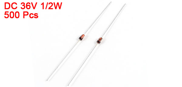 Product Name Zener Diodes Type DIP Tolerance ± 5% Rating Power 1/2 W Zener Voltage DC 36V Size(Not Include Leads) 0.36 x 0.18cm / 0.142" x 0.071"(L*D) Leads Dia(Approx) 0.04cm / 0.016" Overall Length(Approx) 6cm / 2.4" Color As Picture Show Weight 53g Package Content 500(±2%) Pcs of Zener Diodes - Reviews