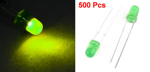 500 Pcs 3mm Dia Round Head 2Pin Green Light Emitting Diode LED Bulb Lamp