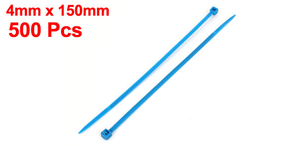 500 Pcs 4mm x 150mm Nylon Self-Locking Electric Cable Zip Ties Fastener Blue