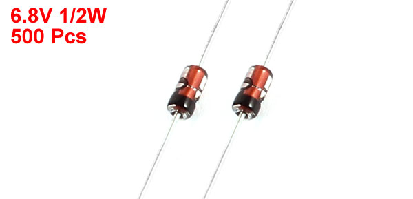 Product Name Zener Diodes Type DIP Tolerance ± 5% Rating Power 1/2 W Zener Voltage DC 6.8V Size(Not Include Leads) 0.36 x 0.18cm / 0.142" x 0.071"(L*D) Leads Dia(Approx) 0.04cm / 0.016" Overall Length(Approx) 6cm / 2.4" Color As Picture Show Weight 53g Package Content 500(±2%) Pcs of Zener Diodes - Reviews