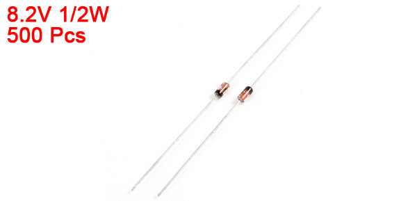 Details500 Pcs 8.2V 1/2W Electronic Zener Voltage Stabilizing Diodes  Product Name Zener Diodes Type DIP Tolerance ± 5% Rating Power 1/2 W Zener Voltage DC 8.2V Size(Not Include Leads) 0.36 x 0.18cm / 0.142" x 0.071"(L*D) Leads Dia(Approx) 0.04cm / 0.016" Overall Length(Approx) 6cm / 2.4" Color As Picture Show Weight 53g Package Content 500(±2%) Pcs of Zener Diodes