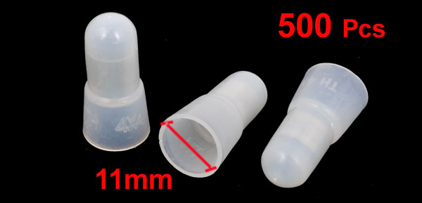 Product Name Closed End Wire Connector Tin-plated Tube Inner Dia 8mm/ 0.31" Tin-plated Tube Length 7mm/ 0.28" Inner Dia 11mm/ 0.43" Total Size (Each) 13 x 27mm/ 0.51" x 1.1" (Max.Dia.*L) Color Gray Material Plastic, Metal Weight 843g Package 500(± 2%) x Closed End Wire Connector - Reviews