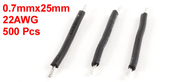 Product Name Motor Wire Type 22AWG Rated Temperture 80C Rated Voltage 300V Wire Length 25mm/1" Wire Outside Diameter 1.6 mm / 0.06" Wire Core Diameter 0.7mm/0.03" Material Plastic, PVC, Tin Plated Copper External Color Black Weight 49g Package 500(±2%) Pcs x Motor Wire - Reviews