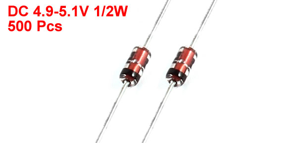 Max:5.1VSize(Not Include Leads) 0.36 x 0.18cm / 0.14" x 0.07"(L*D) Leads Dia(Approx) 0.04cm / 0.016" Overall Length(Approx) 6cm / 2.4" Color As Picture Show Weight 50g Package Content 500(±2%) Pcs of Zener Diodes - Reviews