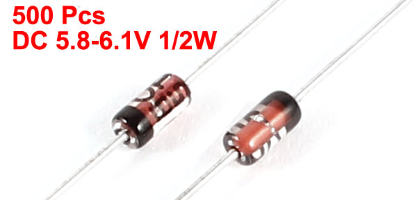 Max:6.1VSize(Not Include Leads) 0.36 x 0.18cm / 0.14" x 0.07"(L*D) Leads Dia(Approx) 0.04cm / 0.016" Overall Length(Approx) 6cm / 2.4" Color As Picture Show Weight 50g Package Content 500(±2%) Pcs of Zener Diodes - Reviews