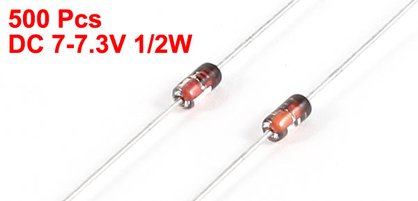 Max:7.3VSize(Not Include Leads) 0.36 x 0.18cm / 0.14" x 0.07"(L*D) Leads Dia(Approx) 0.04cm / 0.016" Overall Length(Approx) 6cm / 2.4" Color As Picture Show Weight 50g Package Content 500(±2%) Pcs of Zener Diodes - Reviews