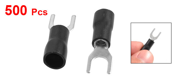 500 Pcs SV3.5-5 AWG 14-12 Black Pre Insulated Fork Terminals Connector