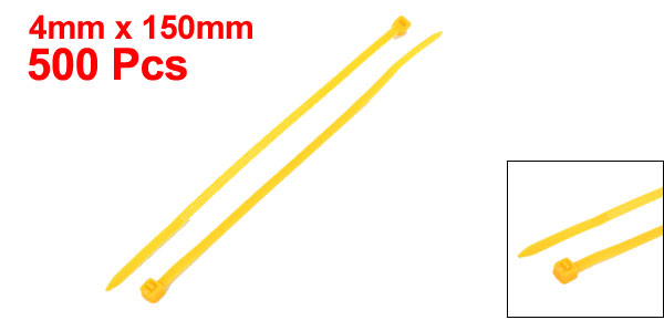 500 Pieces 4mmx150mm Nylon Self-Locking Electric Cable Zip Ties Fastener Yellow