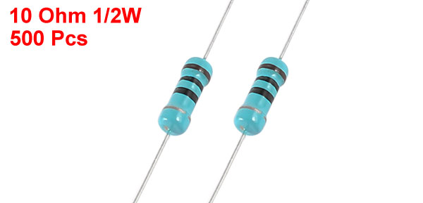 Product Name Metal Oxide Film Resistors Power Rating 1/2W Resistance Tolerance ± 5% Resistance 10 Ohm Size (Approx.) 59 x 3mm / 2.4" x 0.12" (L*Max.D) Main Color Silver Tone Weight 111g Package Content 500Pcs(±2%) x Metal Oxide Film Resistors - Reviews
