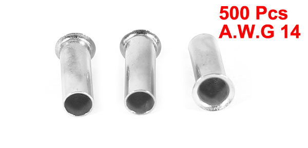 500 Pieces Silver Tone EN2508 Copper A.W.G 14 8mmx3mm Non-Insulated Wire Ferrule