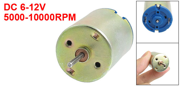 Product Name DC Motor Rated Voltage DC 6-12V Speed 5000-10000RPM Mounting Screw Hole Diameter 2.5mm/0.1" Mounting Hole Center Distance 14mm/0.55" Shaft Size 2 x 13mm/ 0.08" x 0.5"(D*L) Body Size 24 x 31mm/ 0.9" x 1.2" (D*H) Main Color Copper Tone, Blue Material Metal Net Weight 42g Package 1 x DC Motor - Reviews