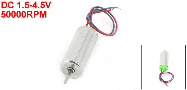 Main Color Silver Tone Brand DMiotech Country of Manufacture CHINA Total Length 22mm/0.87" Model 716 Material Metal Shaft Size 1 x 5mm(D*L) Wire Length 5cm/2" Net Weight 4g Rated Voltage DC 1.5-4.5V Package Content 1 x DC Coreless Motor Rotary Speed 50000RPM Body Size 16.5 x 7mm/0.65" x 0.28"(L*D) - Reviews