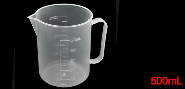 Details500mL Capacity 1.3cm Wide Handle Clear White Plastic Lab Beaker Measuring Cup  Product Name Beaker Measuring Cup Material Plastic Color Clear White Capacity 500mL Handle Size 8 x 1.3 cm / 3.1" x 0.5" (H*W) Size 9 x 11.5 cm / 3.5" x 4.5"(D*H) Net Weight 44g Package Content 1 x Beaker Measuring Cup