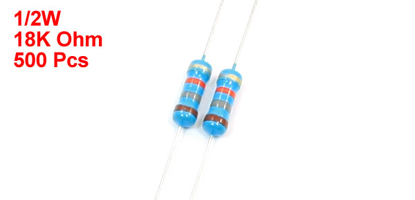 Product Name Carbon Film Resistors Material Carbon Film Power Rating 1/2W Resistance Tolerance ± 5% Resistance 18K Ohm Size (Approx.) 60 x 3mm / 2.4" x 0.19" (L*Max.D) Main Color Silver Tone,Gray Weight 121g Package Content 500Pcs(±2%) x Carbon Film Resistor - Reviews