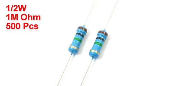 Product Name Carbon Film Resistors Material Carbon Film Power Rating 1/2W Resistance Tolerance ± 5% Resistance 1M Ohm Size (Approx.) 60 x 3mm / 2.4" x 0.12" (L*Max.D) Main Color Silver Tone,Blue Weight 119g Package Content 500Pcs(±2%) x Carbon Film Resistor - Reviews