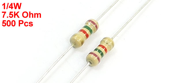 500Pcs 1/4W 7.5K Ohm 5% Tolerance Carbon Film Resistor Axial Lead